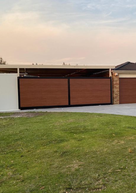 Timber-look Colorbond panels in earthy tones complement natural surroundings without genuine timber’s maintenance demands. Horizontal slat designs and matt finishes harmonize with bushland settings, while custom color matching ensures doors blend seamlessly with existing architecture and surrounding vegetation throughout Loftus’s transitional residential areas.
